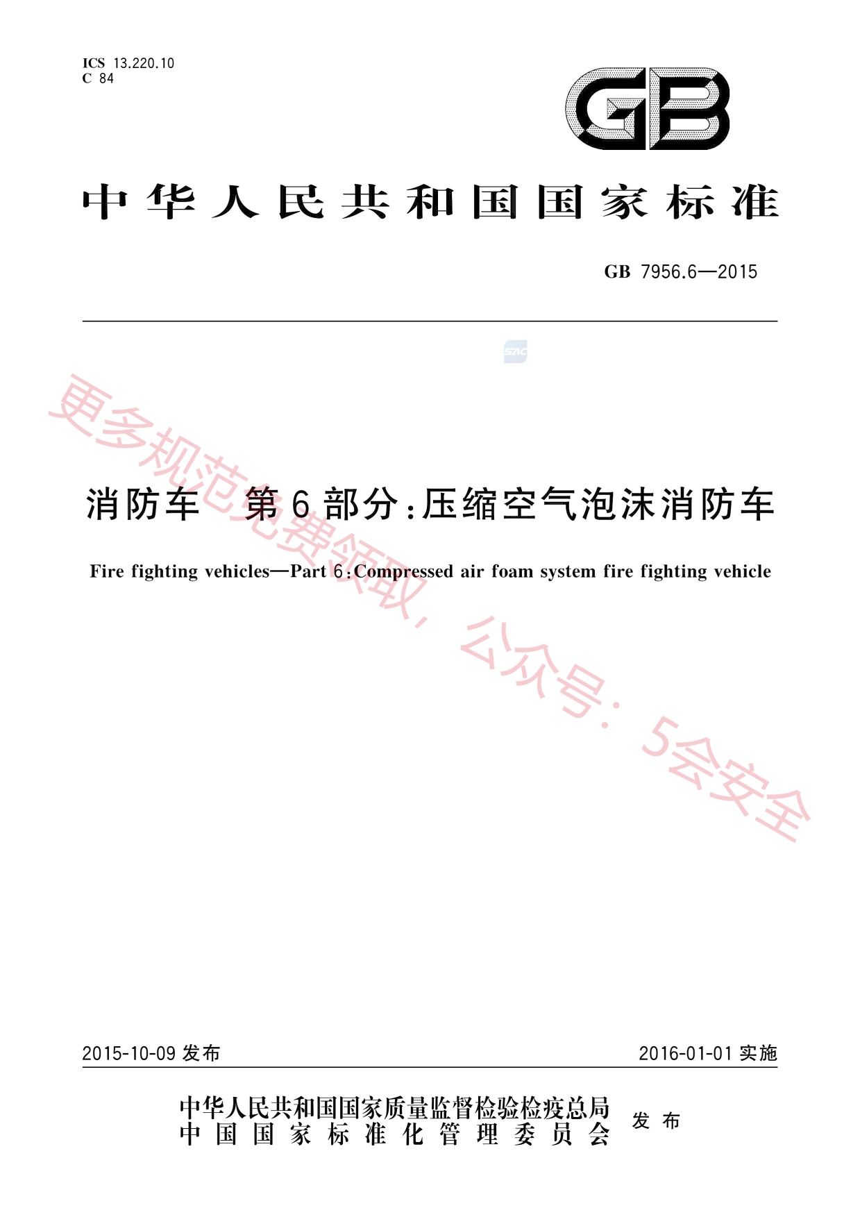 GB7956.6-2015消防车第6部分:压缩空气泡沫消防车